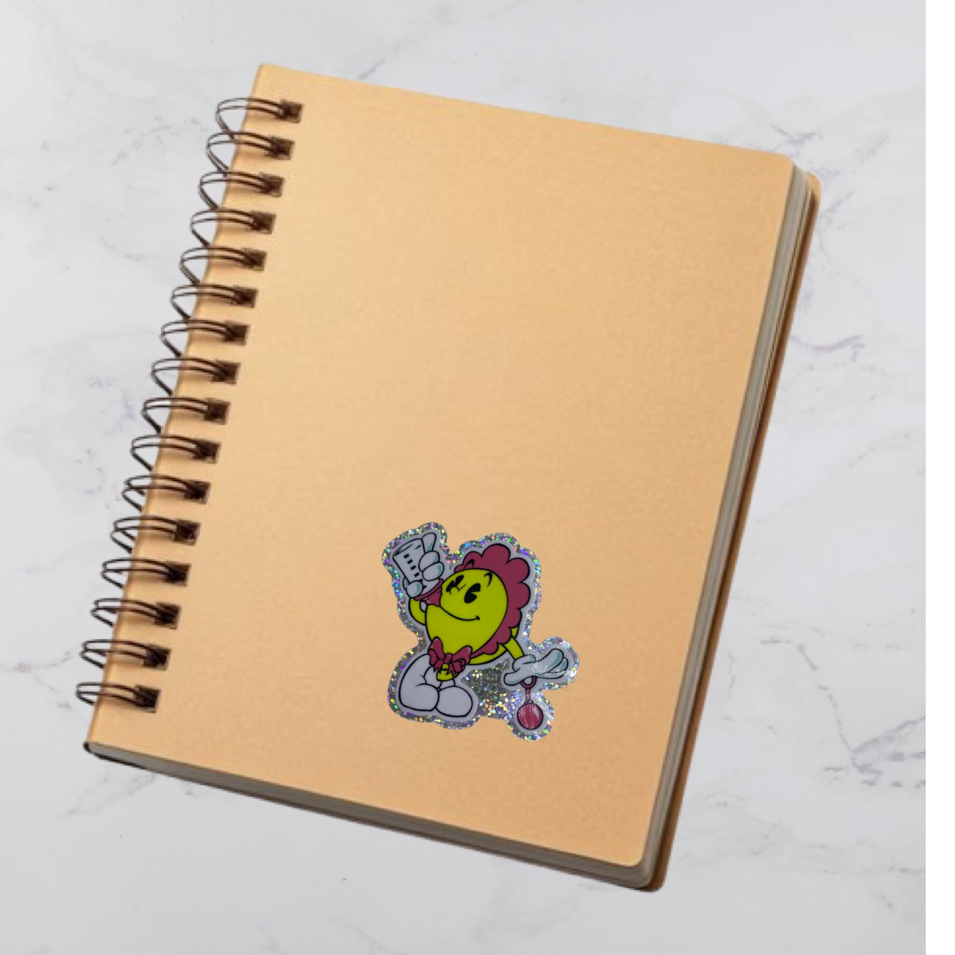 Baby Pac-Man holographic die cut matte pinball sticker that brings retro arcade charm to any surface! This eye-catching 3" sticker features shimmering holographic details that catch the light beautifully, making it a standout addition to your collection. Crafted from premium waterproof vinyl, it's built to withstand scratches, weather, and everyday wear—whether you're decorating notebooks, laptops, helmets, water bottles, planters, bicycles, phones, bullet journals, cars, skateboards, or anywhere else your imagination takes you. The die-cut design hugs every curve of the artwork for a polished, professional look. Perfect for pinball enthusiasts, arcade lovers, and anyone who wants to add a nostalgic pop of personality to their gear. Stick it on and let your inner gamer shine!